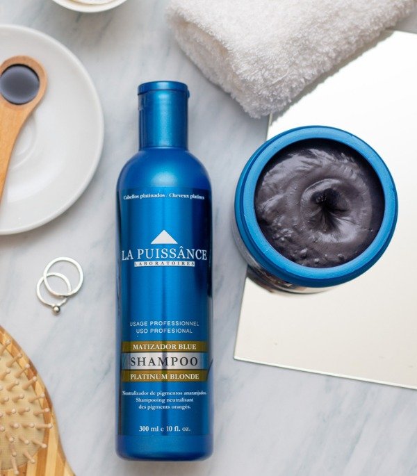 Shampoo matizador que además de lavar en profundidad, elimina los reflejos anaranjados en cabellos decolorados