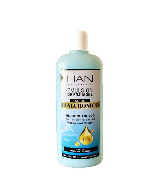 Hidronutritivo, protector y reparador. Con proteínas de Colágeno.El acido hialurónico, se encuentra de manera natural en nuestro organismo. Ayuda a mantener la piel y el cabello hidratado. Capaz de mantener hasta 100 veces su peso molecular en agua. Al unirse con el colágeno que contiene el cabello forman proteínas, fuente de una importante nutrición. Es ideal para prevenir y mantener sanos y fuertes cabellos normales y para tratar y restaurar cabellos secos y teñidos.