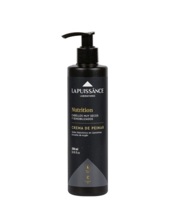 Crema sin enjuague con Ácido Hialurónico en liposomas y Aceite de Argán. Su fórmula hidrata, nutre y suaviza en profundidad, ayudando a reducir el frizz y el tiempo de secado.