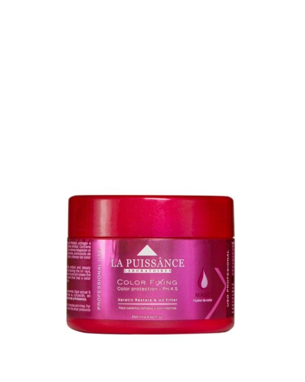 Exclusiva fórmula de alta gama, especificamente diseñada para hidratar, protejer e iluminar profundamente las fibras capilares de todos los cabellos teñidos. Contiene particulas bloqueadoras de los rayos solares UV, evitando que los mismos desgasten el color, potenciando su brillo. Su ph ácido, cierra las cutículas abiertas, acentuandode esta manera el brillo natural, al mismo tiempo que un blend fijador y retensor del color actúa profundamente a lo largo de toda su extención.