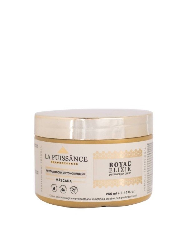 La máscara Royal Elixir ayuda a fortalecer y proteger las fibras capilares desde el primer uso. Perfecto para cabellos rubios teñidos y naturales, la fórmula profesional, enriquecida con Jalea Real y Phytoscreen™, contiene una poderosa mezcla de vitaminas, proteínas y minerales que balancean las cargas electrostáticas impidiendo la adherencia de partículas sobre su superficie, evitando el daño de agentes externos. Ilumina y acentúa los reflejos dorados.
