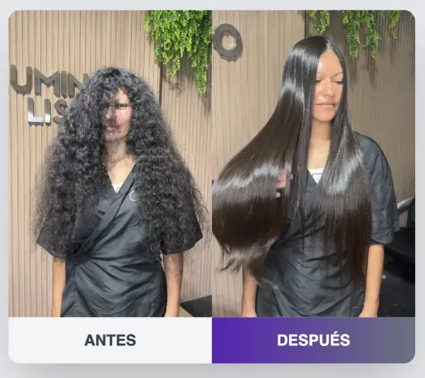 Alisado SIN FORMOL con ácido láctico, aceite de coco y keratina hidrolizada, con Lumini System, para un cabello con un brillo extraordinario por mucho más tiempo.