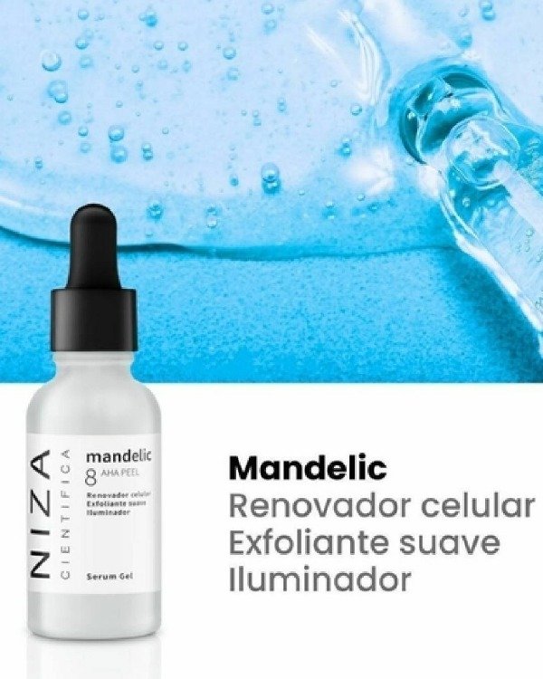 Exfolia la piel suavemente y promueve la renovación celular. Ideal para pieles más sensibles. Es un alfahidroxiácido de origen natural obtenido de las almendras de acción despigmentante, previene la formación de manchas. No se aconseja combinar con ácido ascórbico o retinoico.