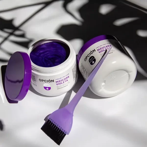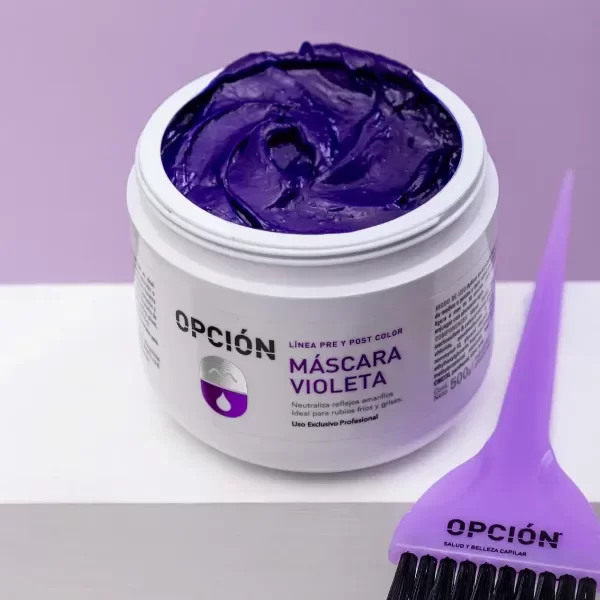 Mantené un color impecable y frío con la Máscara Matizadora Violeta Opción. Este tratamiento intensivo hidrata profundamente y neutraliza los reflejos cálidos en cabellos rubios y canosos.
